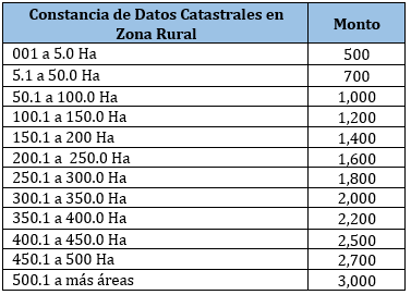 | 5 | Constancia de Datos Catastrales para Reposición de Asiento Registral | C$500.00 |