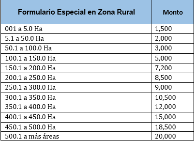 | 6 | 3,001 a más área | C$ 8,000.00 |